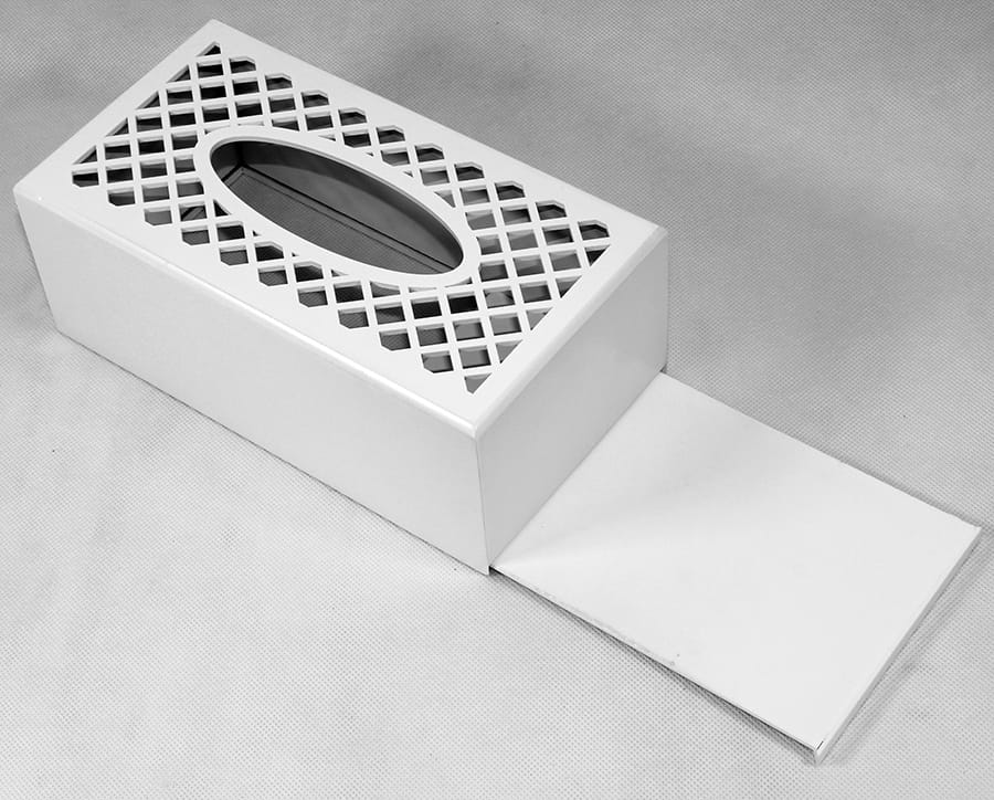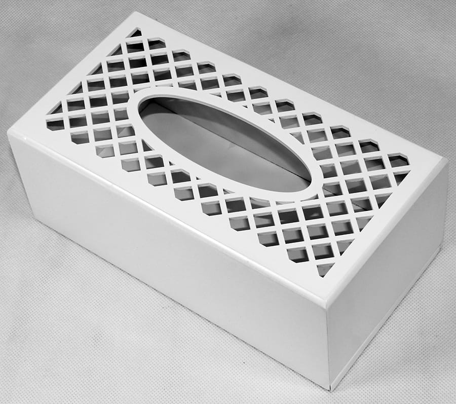 Oryginalny serwetnik wykony z drewna, w kolorze białym. Idealnie przystroi Twój stół, jednocześnie będzie stanowił idealne miejsce dla serwetek. To co od razu przykuwa uwagę to dekoracja wysuwanego wieczka, w postaci regularnej siatki kwadratów, które sprawiają, że serwetnik będzie stylową ozdobą każdego wnętrza.