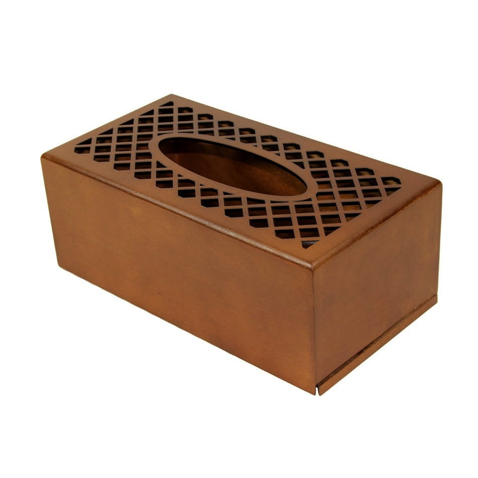 Oryginalny serwetnik wykony z drewna, w kolorze brązowym. Idealnie przystroi Twój stół, jednocześnie będzie stanowił idealne miejsce dla serwetek. To co od razu przykuwa uwagę to dekoracja wysuwanego wieczka, w postaci regularnej siatki kwadratów, które sprawiają, że serwetnik będzie stylową ozdobą każdego wnętrza.