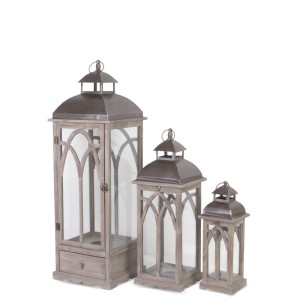 Komplet Trzech Szarych Lampionów Drewno