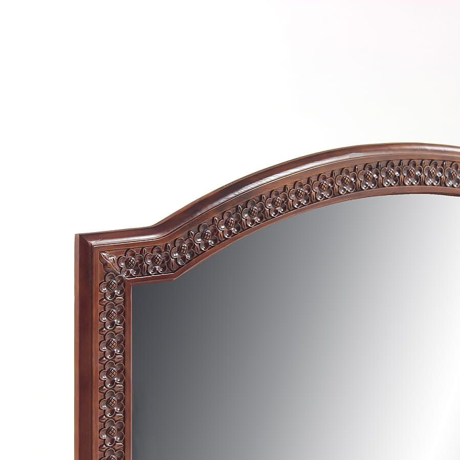 Prezentujemy lustro w drewnianej ramie. Obramowanie jest koloru dębu i posiada piękne zdobienia o motywie florystycznym.