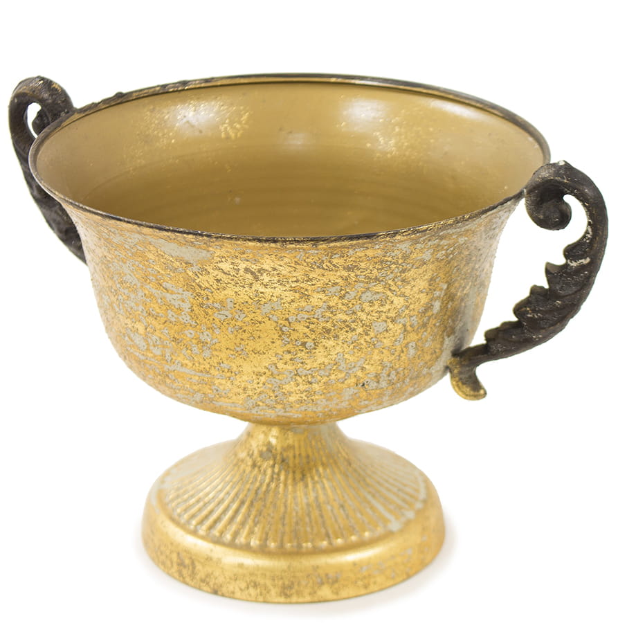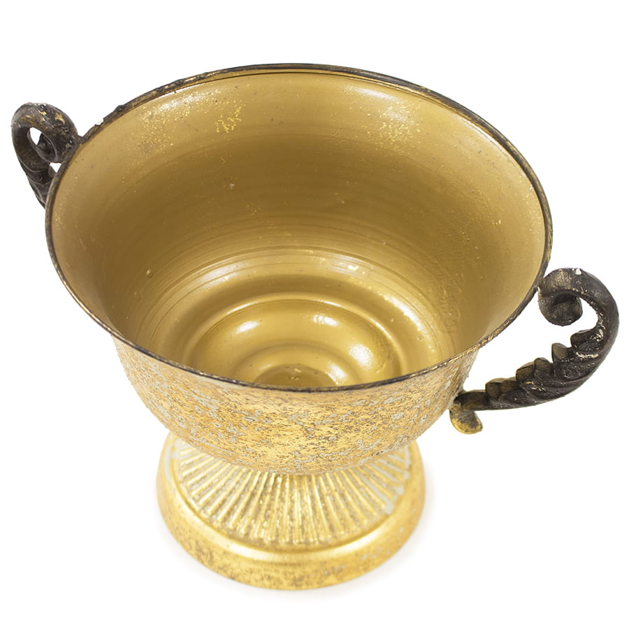 Metalowy puchar antyczna osłonka na doniczkę - wysokość 18 cm
