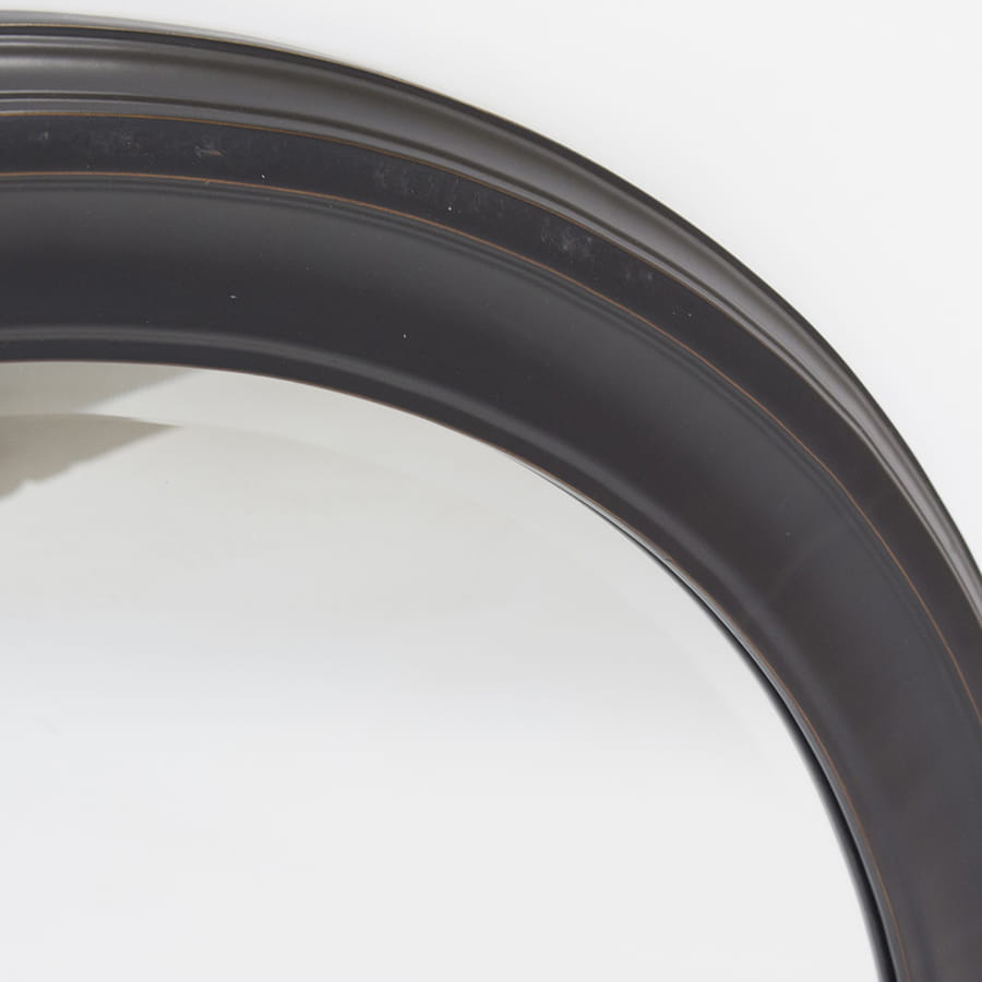 Eleganckie lustro ścienne z okrągłą, fazowaną taflą. Umieszczone jest ono w drewnianej, subtelnie rzeźbionej ramie o tym samym kształcie. Obramowanie prezentuje się w kolorze ciemnego brązu. Jest to elegancki dodatek na ścianę w salonie, łazience, czy też przedpokoju!