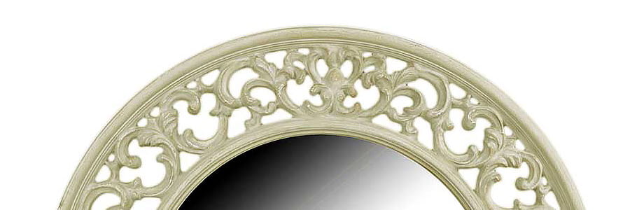 Eleganckie fazowane lustro w solidnej, ażurowej ramie wykonanej ze wzmacnianego poliresingu.