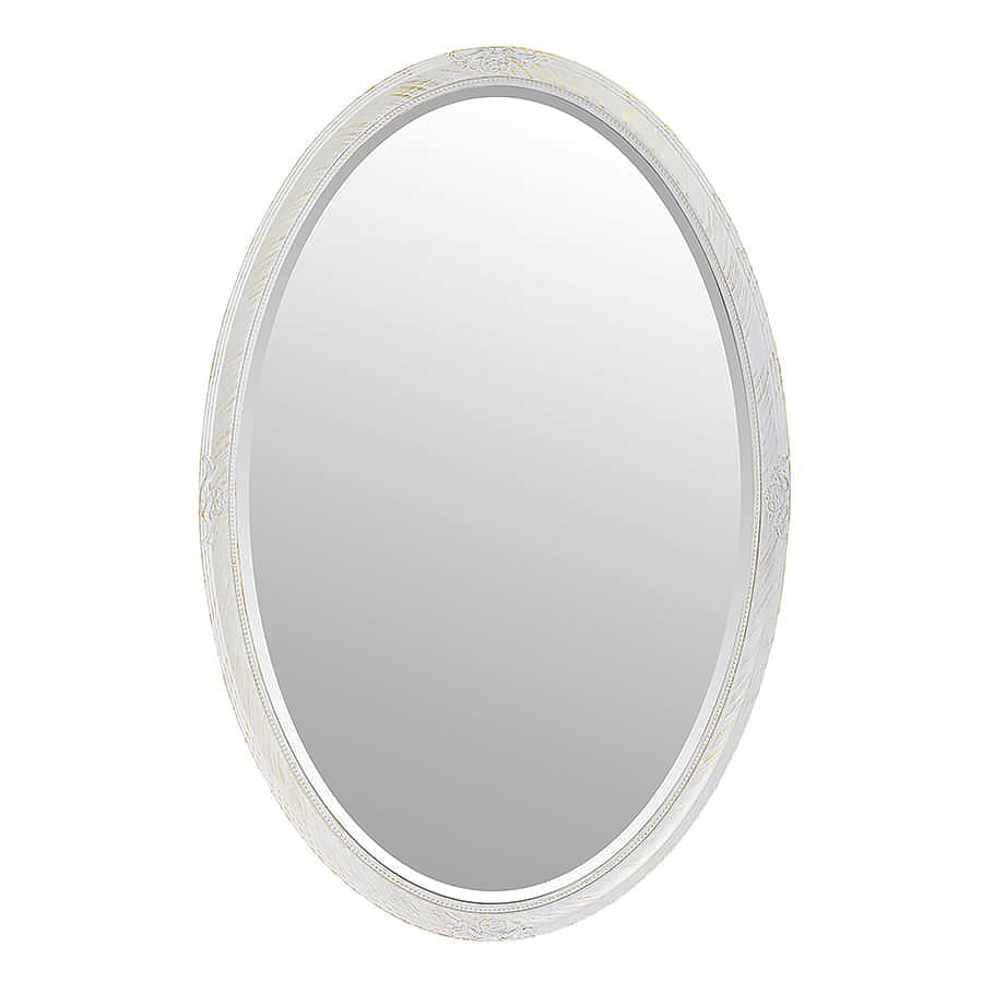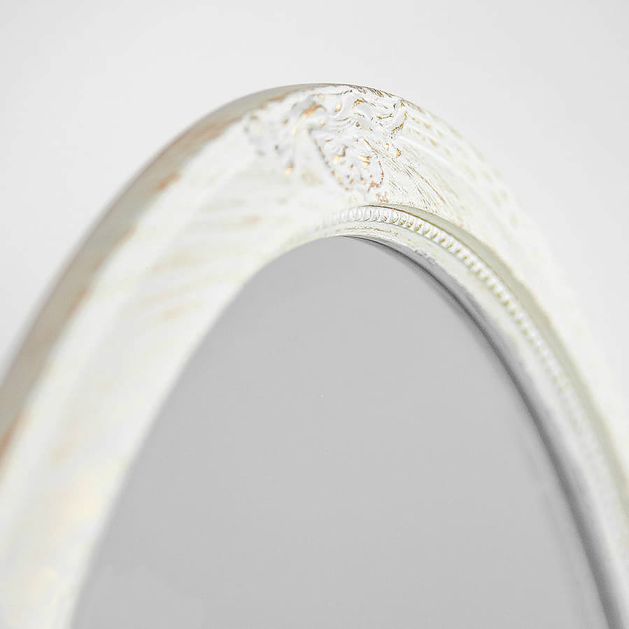 Owalne lustro w białej, przecieranej ramie 113486