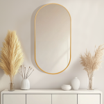 Stylowe złote owalne lustro o wymiarach 80x40 cm, idealne do wnętrz w stylu loftowym. Jego minimalistyczna, aluminiowa cienka rama w złocie doskonale podkreśla surowy charakter przestrzeni, dodając wnętrzu elegancji i przestronności. Lustro świetnie sprawdzi się zarówno w salonie, przedpokoju, łazience jak i sypialni, tworząc nowoczesny akcent. Połączenie prostoty i wyrafinowanego designu sprawia, że pasuje do różnych aranżacji, wnosząc do wnętrza lekkość i ponadczasowy styl.